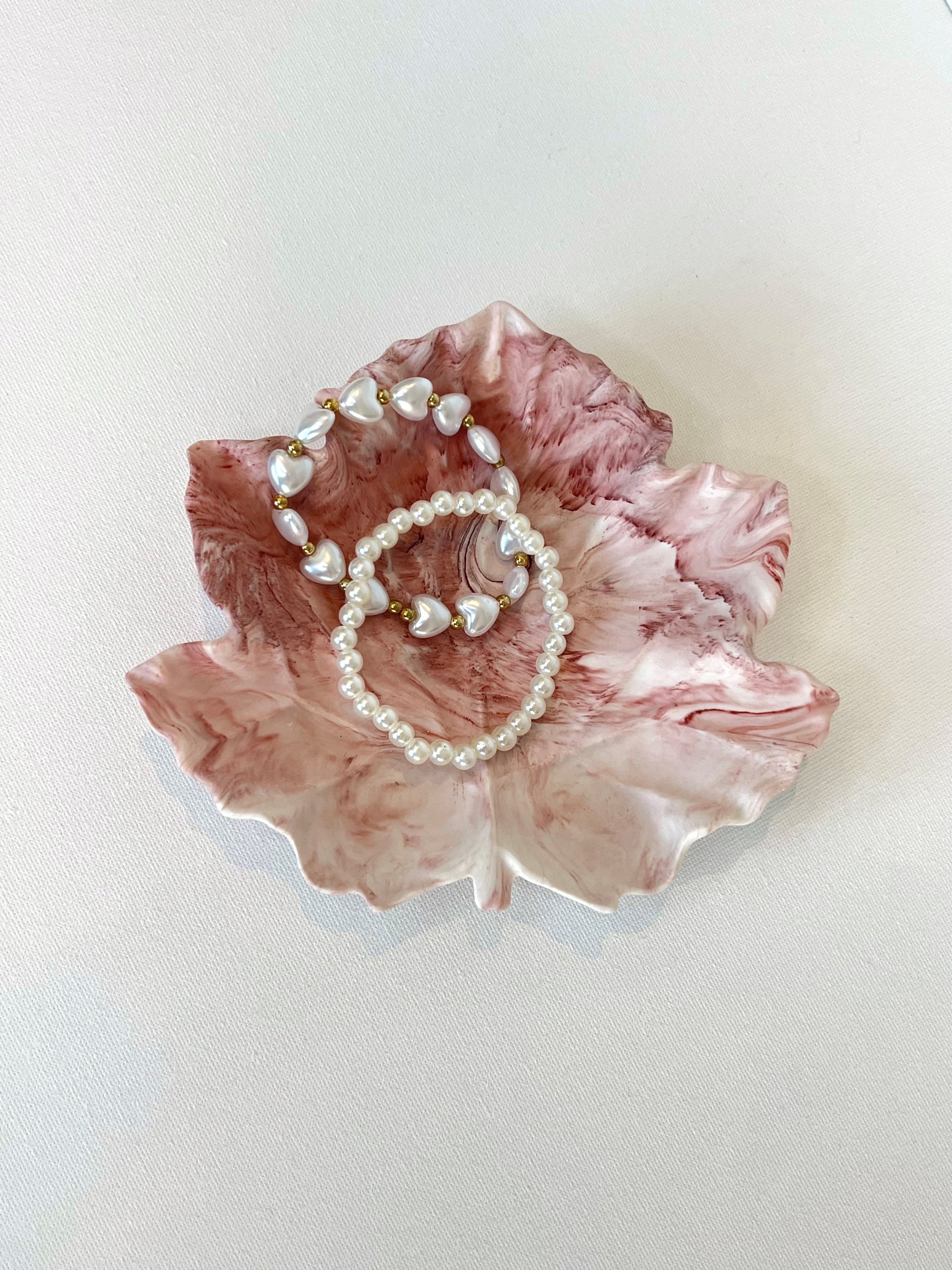 Leaf shaped tray with soft organic lines and natural structure. Perfect as a decorative element on the table, or as a beautiful jewelry tray. The tray fits just as well alone as in combination with other nature inspired interior elements.