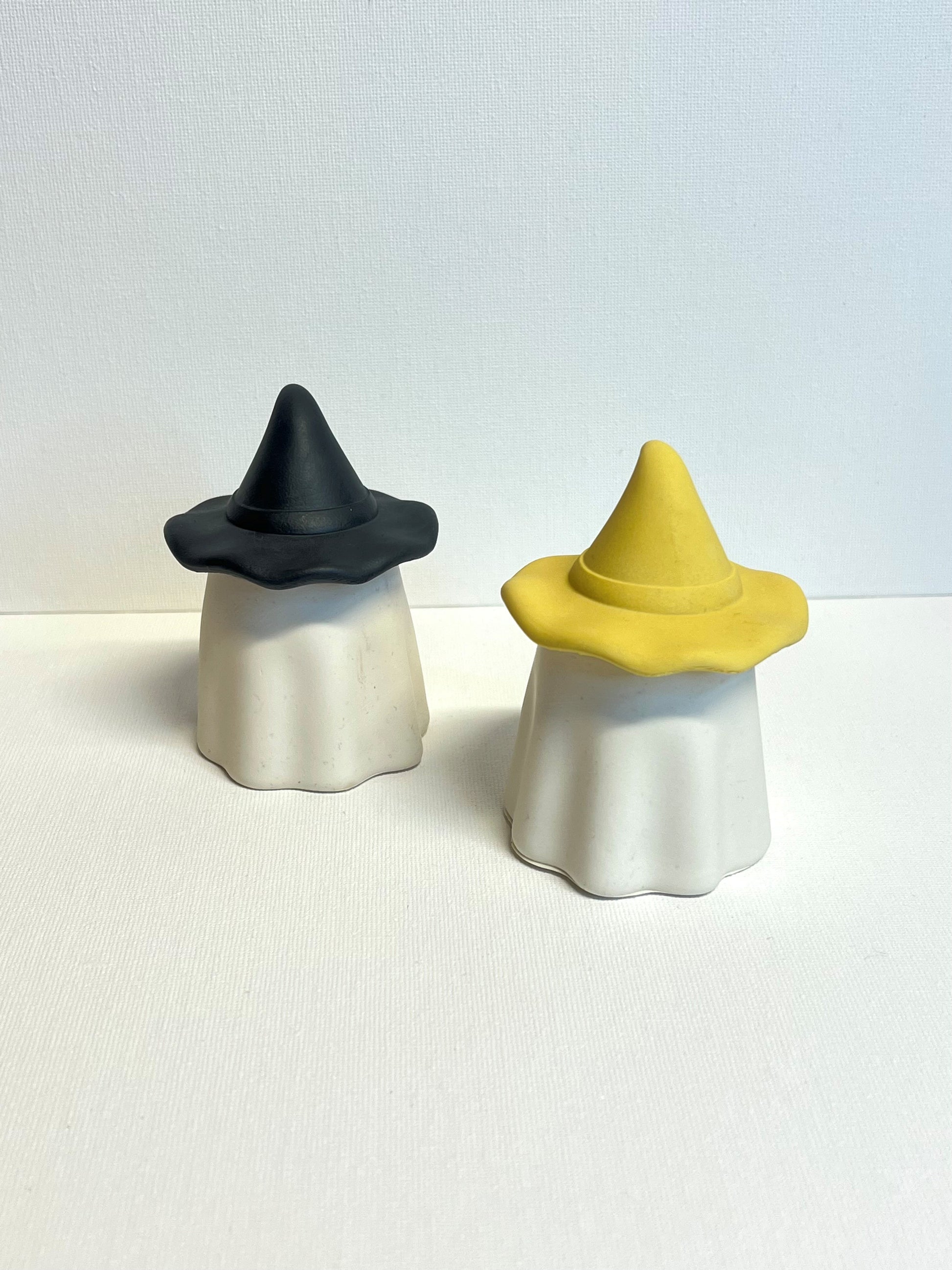 A charming and practical little detail for the home. These are shaped like little ghostly figures with witch hats on top.