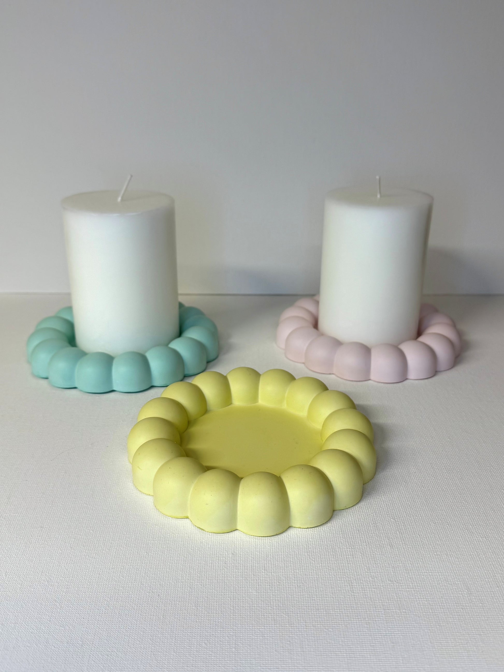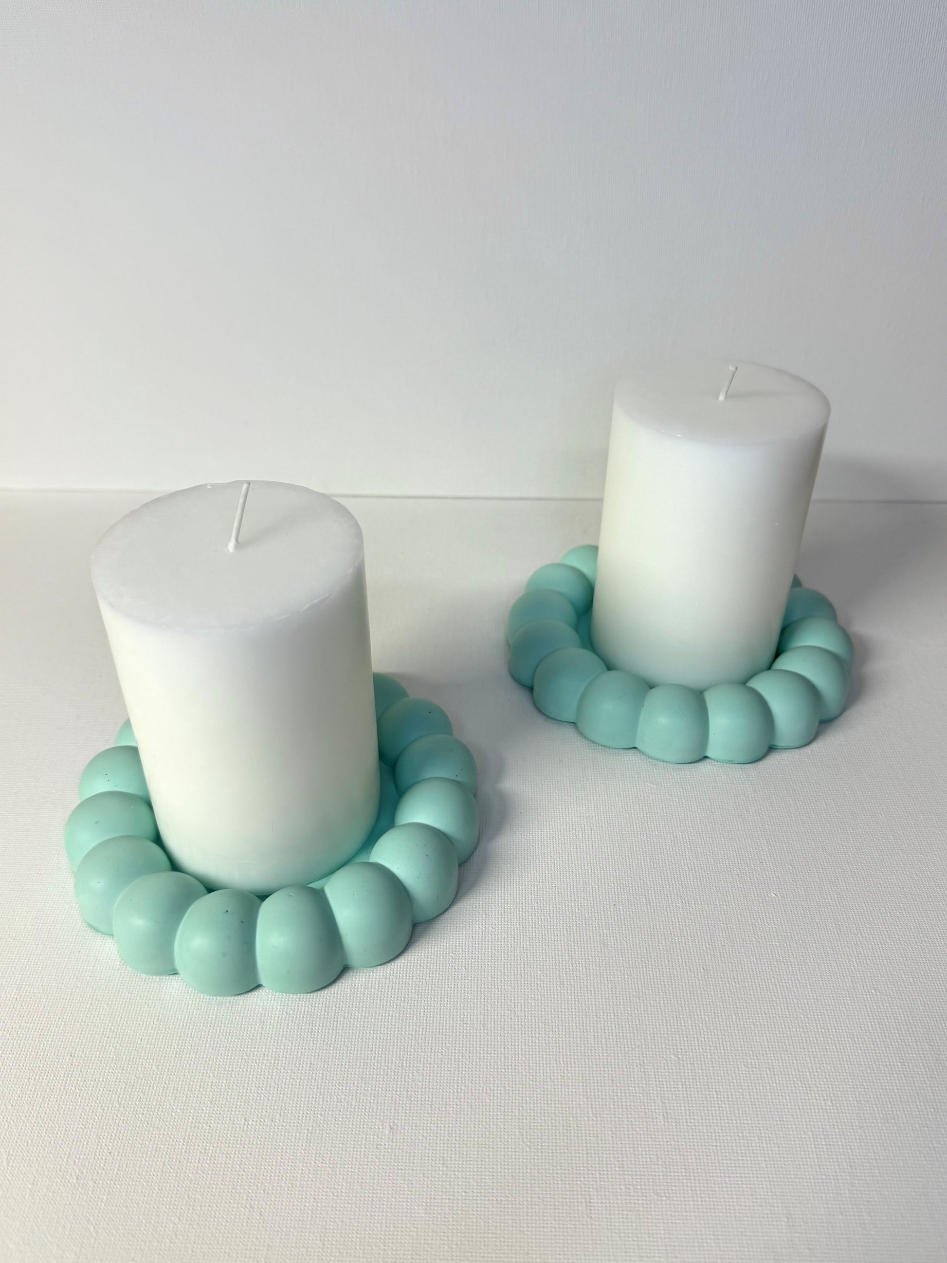 La borddekkingen få en leken og moderne detalj med våre pastellfargede «boble» lysfat.