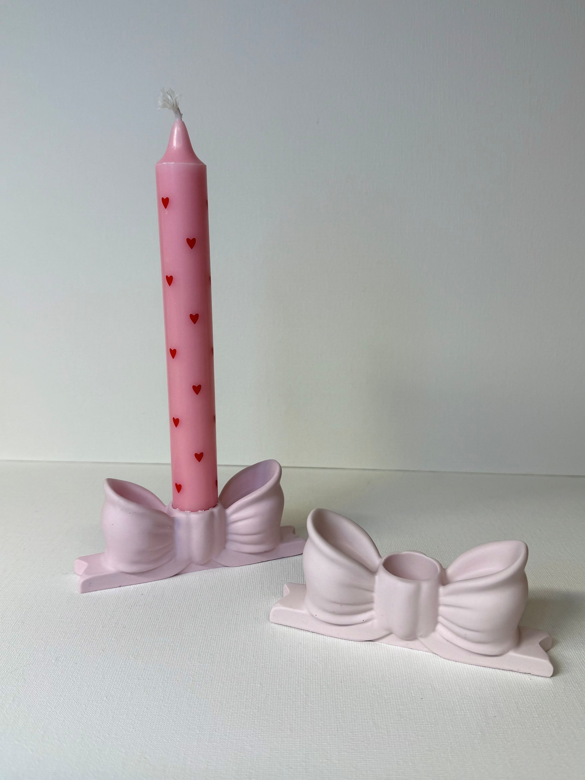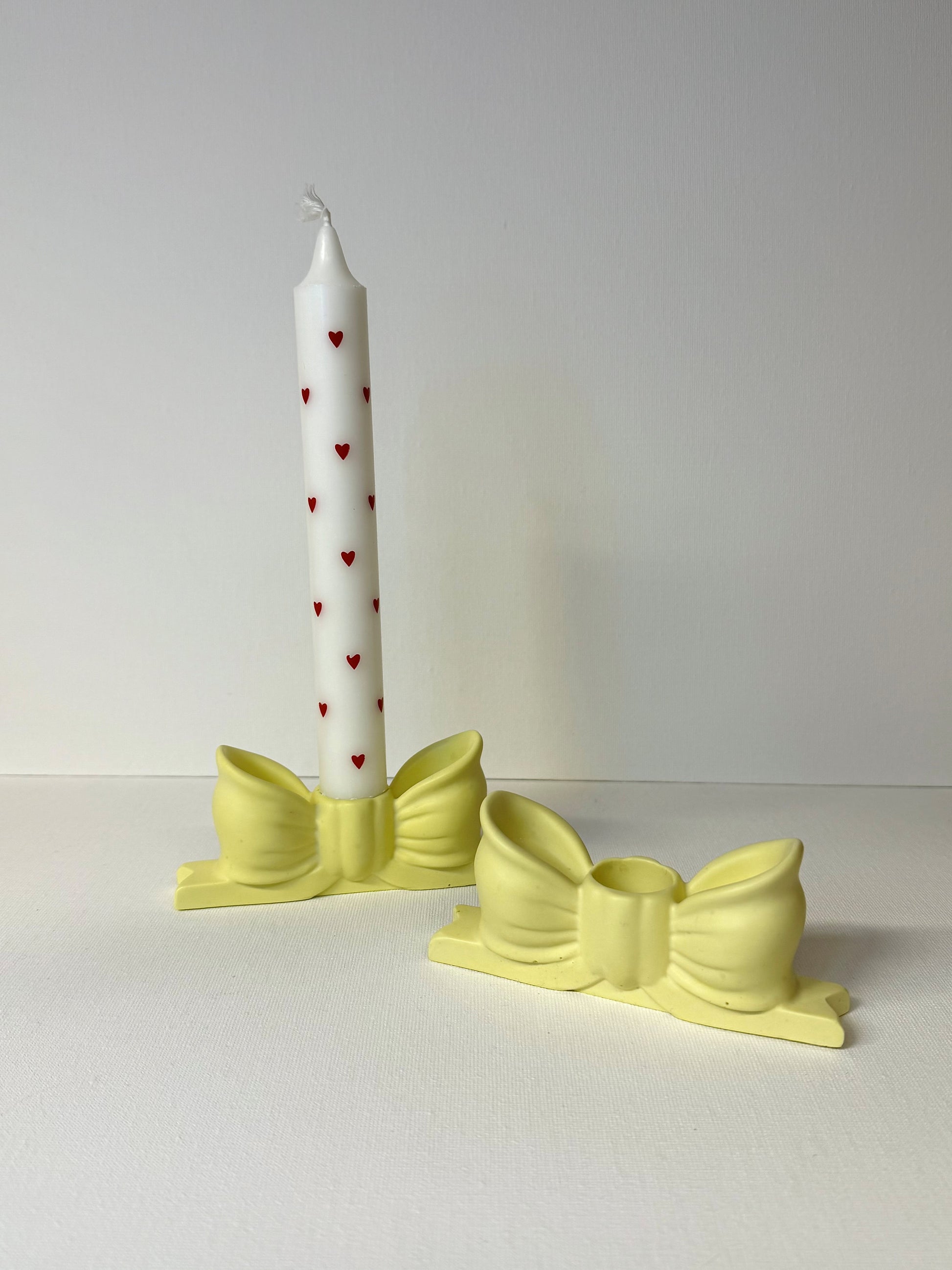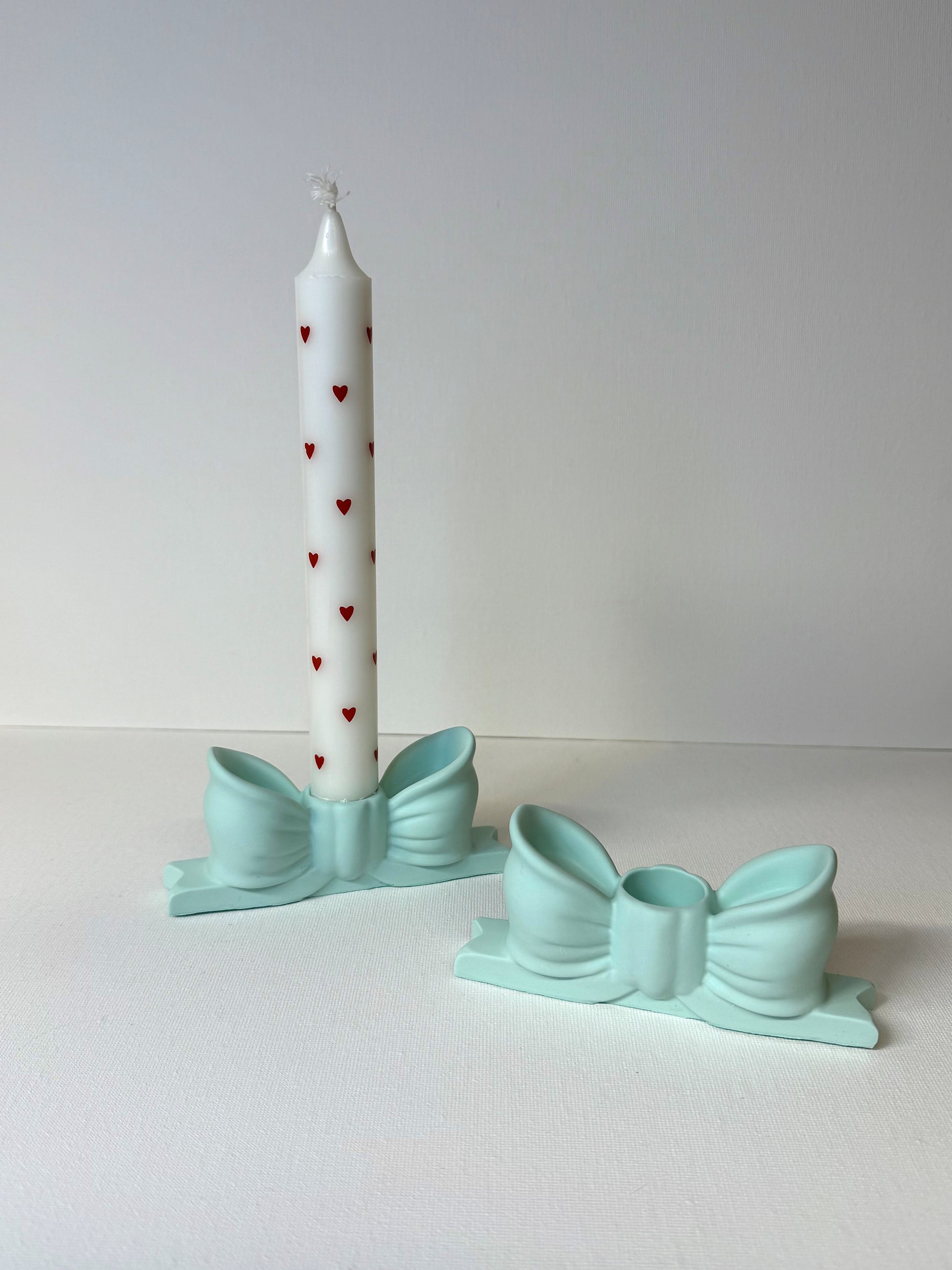 Disse sjarmerende sløyfeformede lysestakene gir et mykt og lekent uttrykk til hjemmet. Med sin delikate sløyfedesign og vakre pastellfarger passer de perfekt til både hverdagskos og spesielle anledninger. Lysestakene er laget for vanlige kronelys og fungerer nydelig alene eller i kombinasjon med flere farger for et personlig og dekorativt uttrykk.