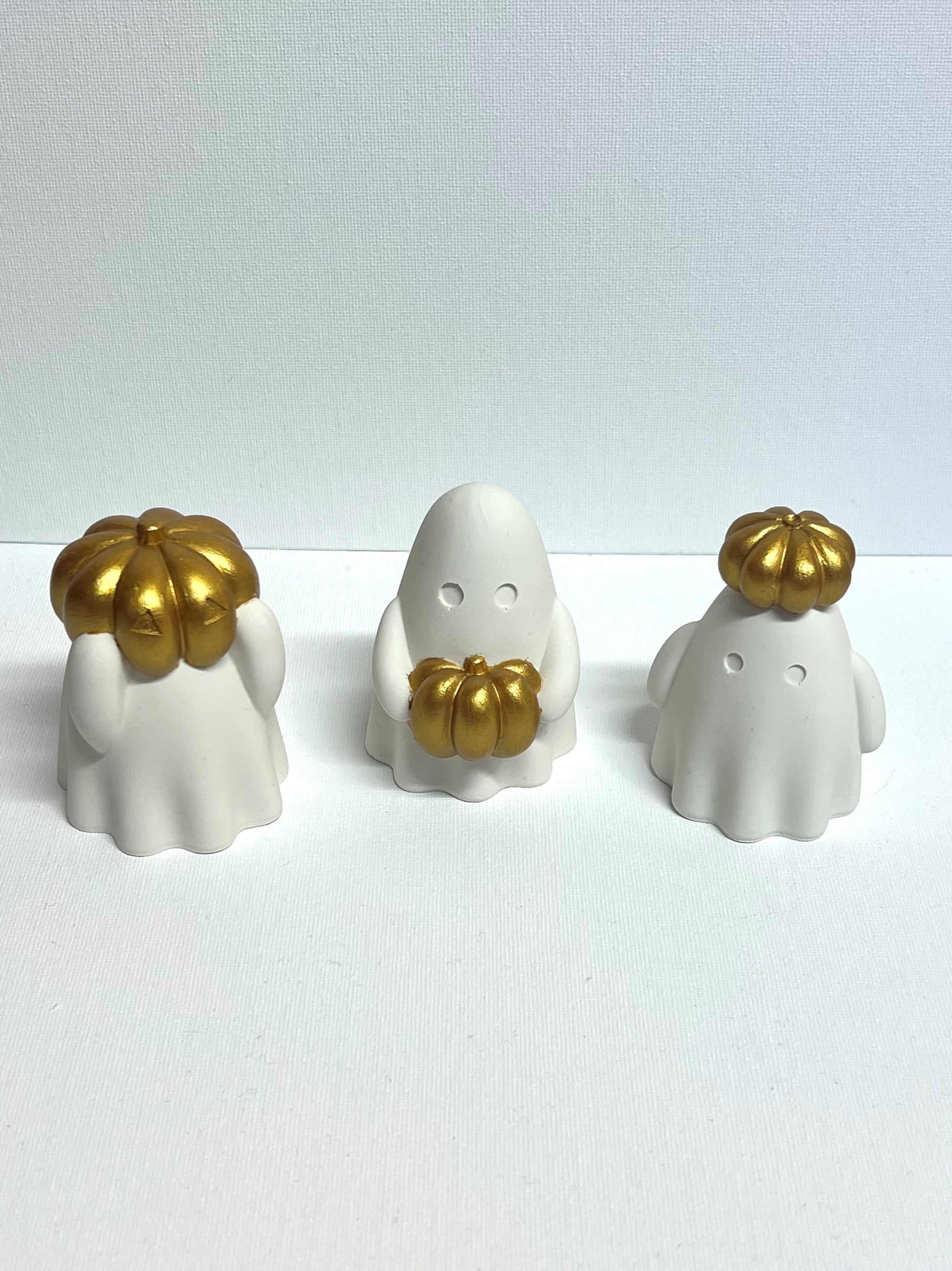 Dette sjarmerende settet med 3 små spøkelsene er laget for å bringe et hint av magi og høststemning inni hjemmet ditt. Med et elegant matt uttrykk og detaljer i gull er det den perfekte kombinasjonen av søtt og stilrent.